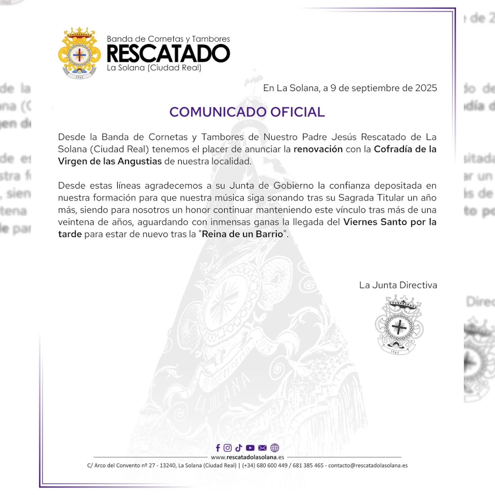 ACTUALIDAD Procesión de subida de Nuestra Señora de Peñarroya 14/09/2025 Salida procesional Renovación Viernes Santo 2026 09/09/2025 Nuevo compromiso, Semana Santa 2026 Repertorio 2026 – Sentimiento Gitano 23/08/2025 Repertorio Galería fotográfica Martes Santo 28/07/2025 Galería fotográfica, Semana Santa 2025 Domingo de Ramos 2026 07/07/2025 Nuevo compromiso, Semana Santa 2026 Repertorio 2026 – Cáliz de Vida 04/07/2025 Repertorio Galería fotográfica del Miércoles Santo 23/06/2025 Galería fotográfica, Semana Santa 2025 Renovación Martes Santo 2026 16/06/2025 Nuevo compromiso, Semana Santa 2026 Anterior 1 2 3 4 5 6 7 8 9 Siguiente